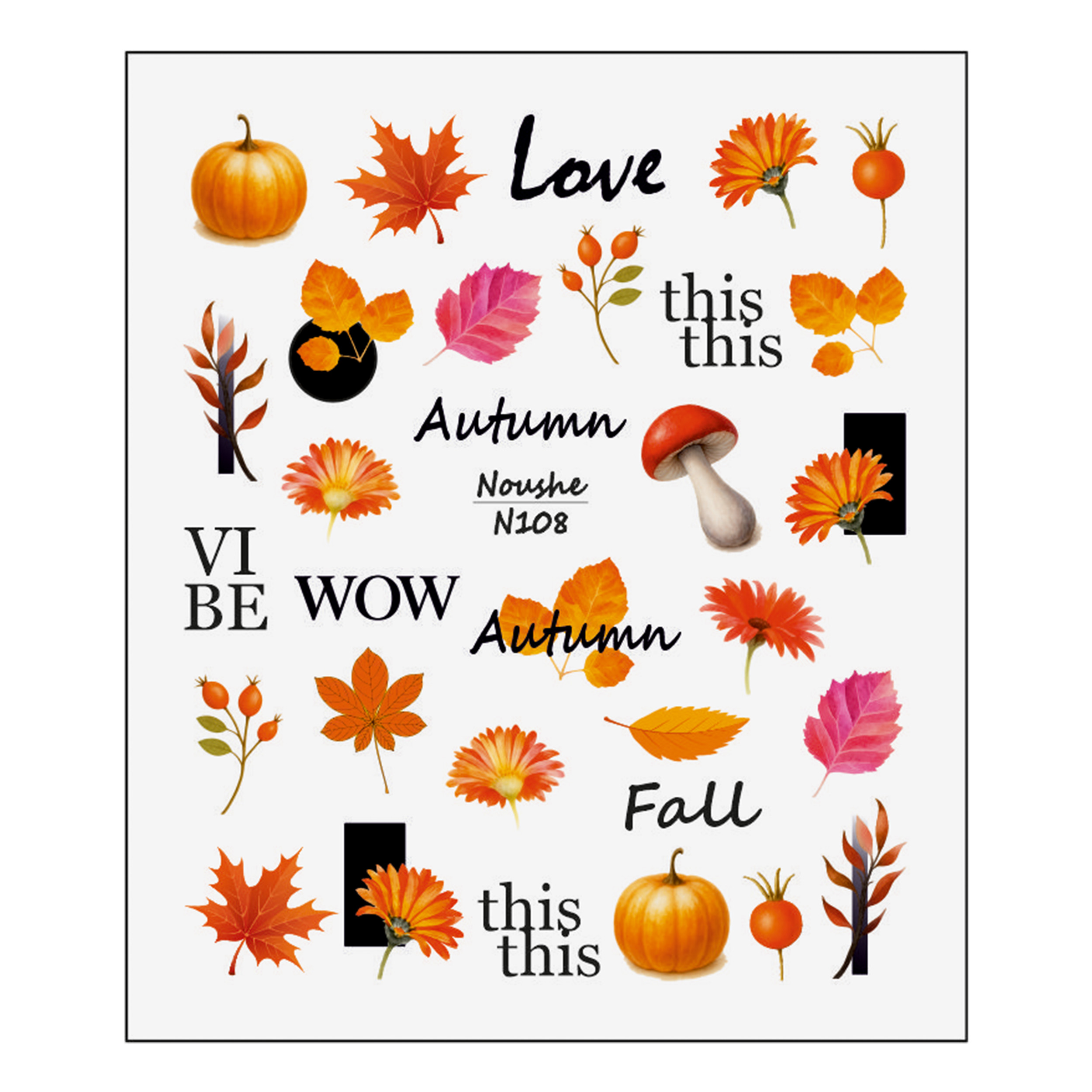با برچسب لنز ناخن پاییزی کد N108، زیبایی و گرمای فصل پاییز را روی ناخن‌های خود احساس کنید. این مجموعه با طرح‌هایی از برگ‌های رنگارنگ، کدو تنبل، گل‌های پاییزی و نوشته‌های خاص، انتخابی ایده‌آل برای کسانی است که عاشق استایل پاییزه هستند.